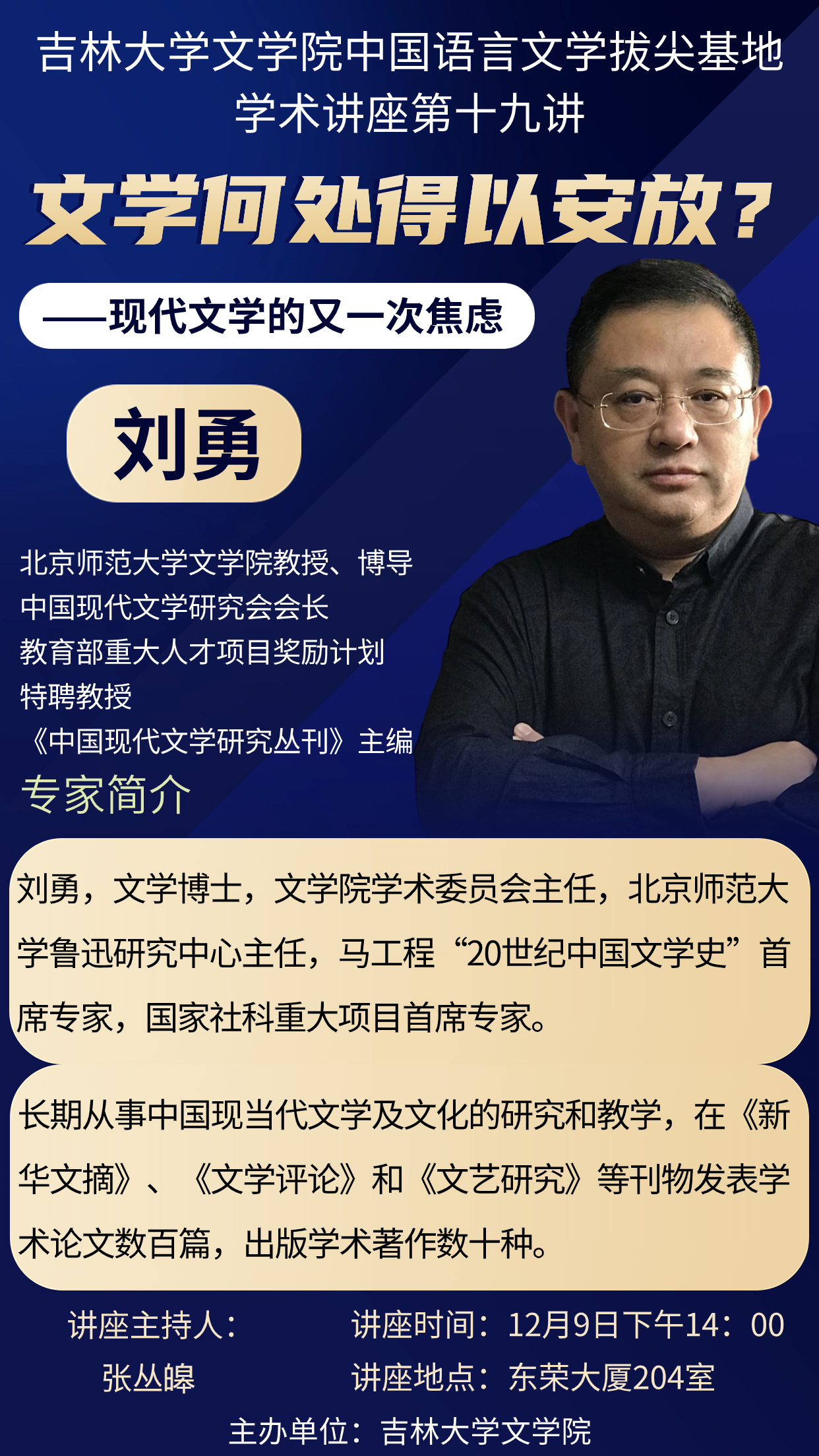 讲座题目:文学何处得以安放?——现代文学的又一次焦虑