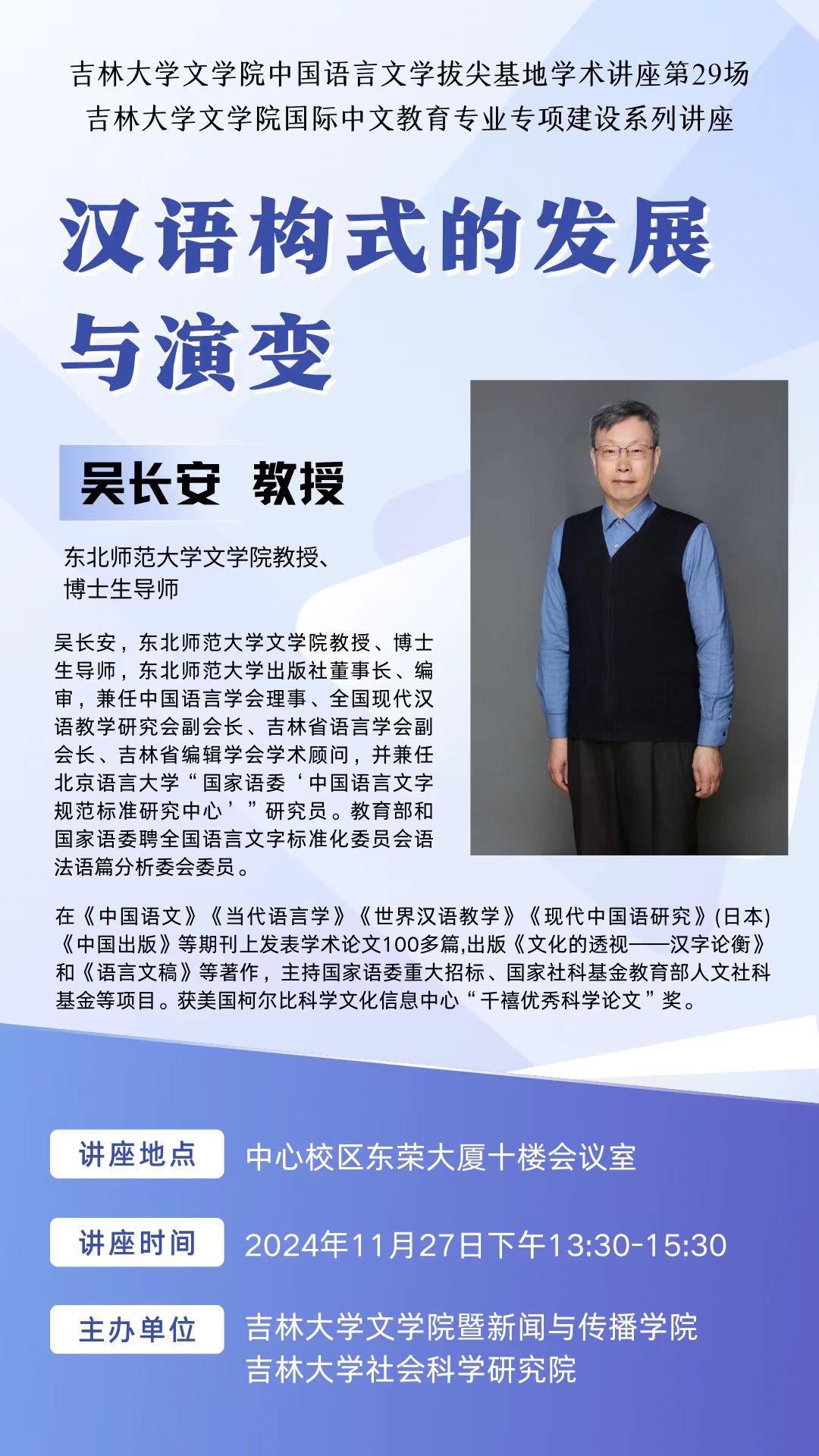 吴长安,东北师范大学3377官方网站_3377(中国)教授、博士生导师,东北师范大学出版社董事长、编审,兼任中国语言学会理事、全国现代汉语教学研究会副会长、吉林省语言学会副会长、吉林省编辑学会学术顾问,并兼任北京语言大学“国家语委‘中国语言文字规范标准研究中心’”研究员。教育部和国家语委聘全国语言文字标准化委员会语法语篇分析委会委员。在《中国语文》《当代语言学》《世界汉语教学》《现代中国语研究》(日本)《中国出版》等期刊上发表学术论文100多篇,出版《文化的透视--汉字论衡》和《语言文稿》等著作,主持国家语委重大招标、国家社科基金教育部人文社科基金等项目。获美国柯尔比科学文化信息中心“千禧优秀科学论文”奖。