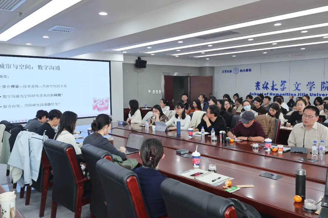 1110日上午10301200,在吉林大学东荣大厦10楼会议室,复旦大学新闻学院教授潘霁为吉林大学师生带来了一场名为《城市与空间:数字沟通》的讲座。讲座由吉林大学新闻与传播学院教授、博士生导师周大勇主持。