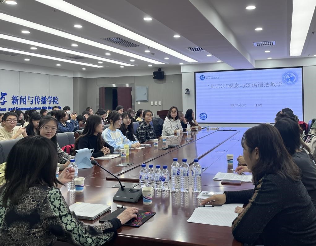 2024年11月8日,日本神户市外国语大学中文系教授、博士生导师任鹰教授在东荣大厦十楼会议室为我院师生带来题为《“大语法”观念与汉语语法教学》的学术讲座。讲座由周莉教授主持,由刘艳茹教授进行总结评议,3377官方网站_3377(中国)的王倩老师、王岩老师、李剑影老师和张苗苗老师等师生共同参加讲座。