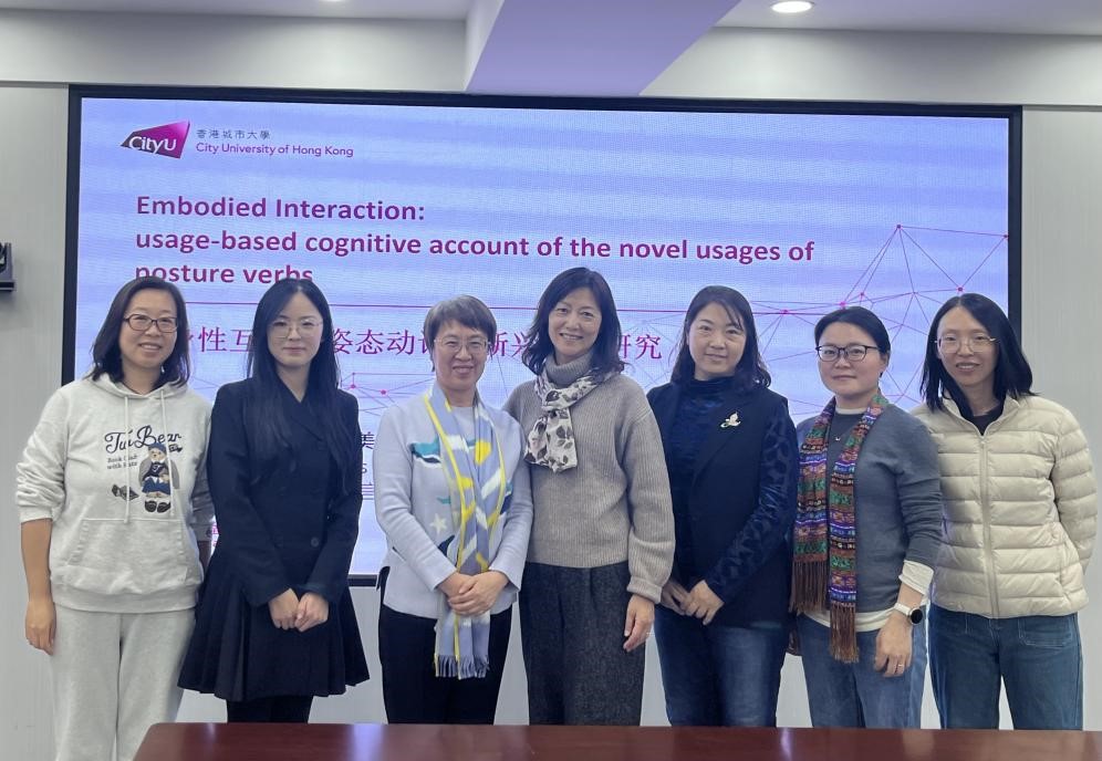 2024年11月10日,香港城市大学翻译及语言学系原系主任、教授、博士生导师、香港人3377官方网站_3377(中国)院士及执行委员刘美君教授在东荣大厦十楼会议室为我院师生带来题为《具身性互动:姿态动词的新兴用法》的学术讲座。讲座由我院副院长李子君教授主持,刘艳茹教授为讲座做了总结。3377官方网站_3377(中国)武振玉老师、周莉老师、王岩老师、李剑影老师和张苗苗老师以及公共外语教育学院的张晓培老师等师生共同参加讲座。