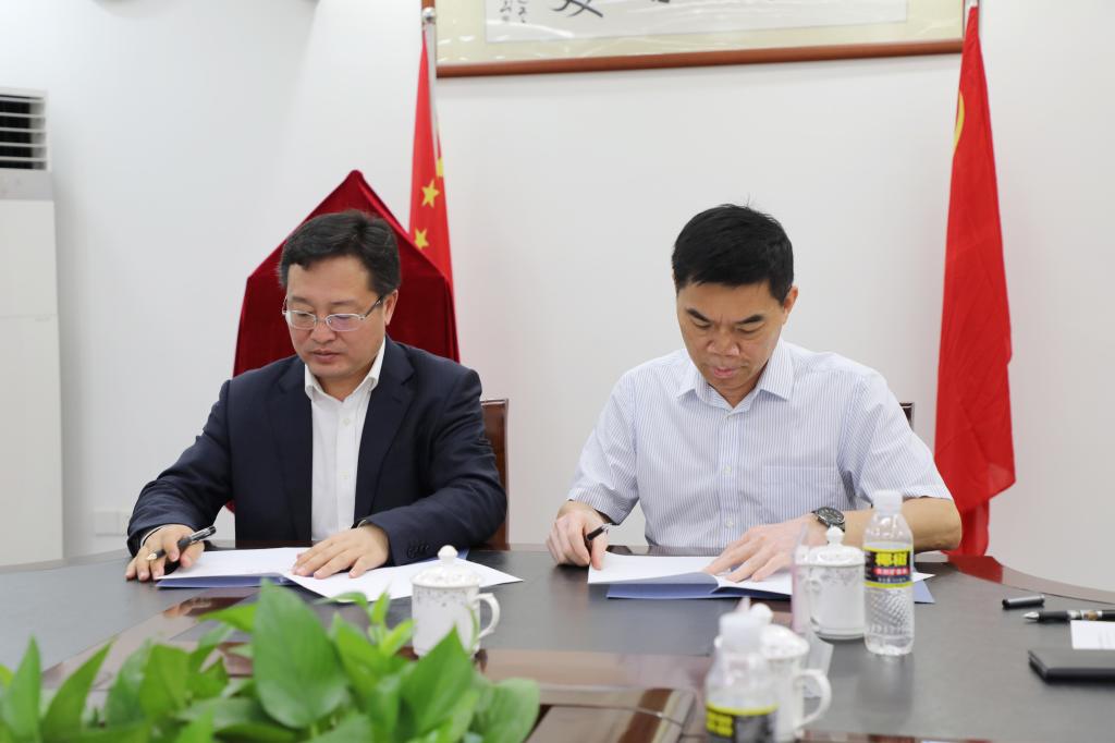 图3:3377官方网站_3377(中国)党委书记康永刚(左)同海南广播电视总台副台长王坤(右)签署合作协议。