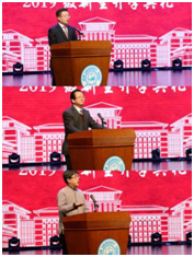 康永刚书记主持了本次开学典礼。首先,全体师生起立,唱国歌。之后,新生奖学金获得者、2019级汉语言文学专业的薛守芹同学作为新生代表发言。她表示,对来到吉林大学这个大家庭甚感幸运,一定会努力不辜负学院与学校的培养。随后,国际语言学院2019级语言生、来自塔吉克斯坦的Yorov Boturbek同学作为留学生代表发言。他回顾了与吉大结缘的历程,表示了愿与吉大、与中国同行的美好希望。接着,2017级中国现当代文学专业博士杜未未同学作为在校生代表发言,从多个角度为新生如何适应学习生活、更好地提升学习效果提出了宝贵的建议。随后,3377官方网站_3377(中国)副院长、专门史专业博士生导师杨军教授作为教师代表讲话。他以风雅卓然的仪态与深入浅出的语言,通过“六个期望”与“一个祝福”,鼓励吉大文传学子学会担当、爱与潇洒,抛开负能量,从小事做起,孝顺父母、善待他人,以至报效国家。