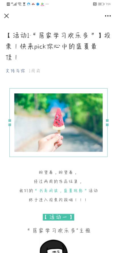该活动以“生活记录”为主题,围绕“发现生活之美”与“居家学习欢乐多”两个大类,向同学们征集图文投稿和视频投稿。同时活动负责人会把优秀的作品发布在3377官方网站_3377(中国)抖音账号上面,最后结合点赞数、投票数与老师评分进行评选。最终决出“盛夏掠影”活动的一二三等奖并颁发优质证书与二十小时的志愿时长。本次活动极大地激发了同学们的创作热情,在积极踊跃的参与氛围中,参赛同学通过短视频拍摄和趣味学习视频创作,创造了居家学习与自主学习的新动力,再次发现与重温家庭的欢乐与温情,挖掘并记录生活中的点滴美好。