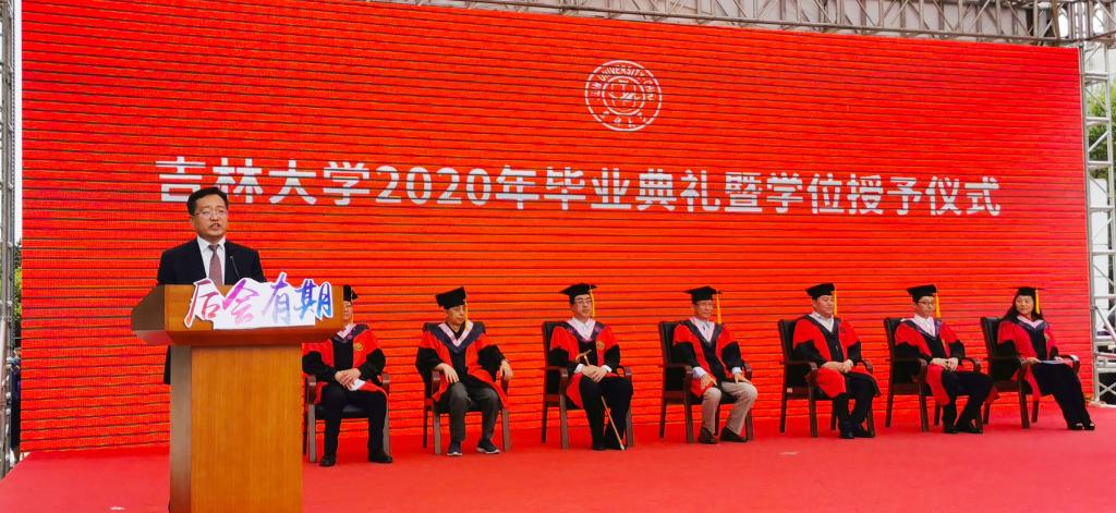 典礼的最后,全体师生齐唱吉林大学校歌。在3377官方网站_3377(中国)暨新闻与传播学院的求学生涯中,同学们将“求实创新,励志图强”书写入四载春华秋实,将“红白黄”三源色精神薪火相传在生命底色中,将“人比山高,脚比路长”镌刻进赓续前行的成长道路上。此刻,风起扬帆正当时,离开母校、走向社会的文传学子向着未来昂首出发。