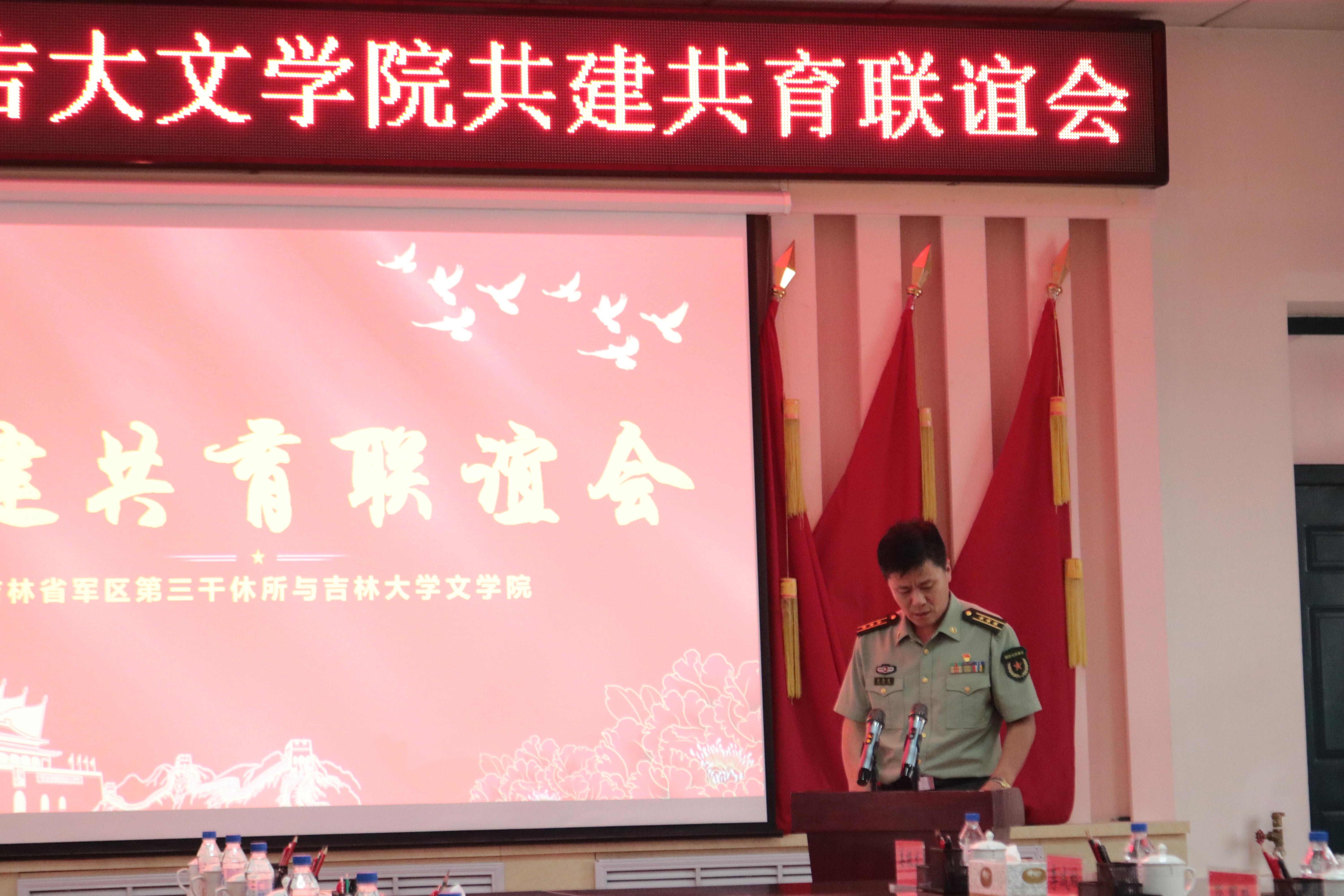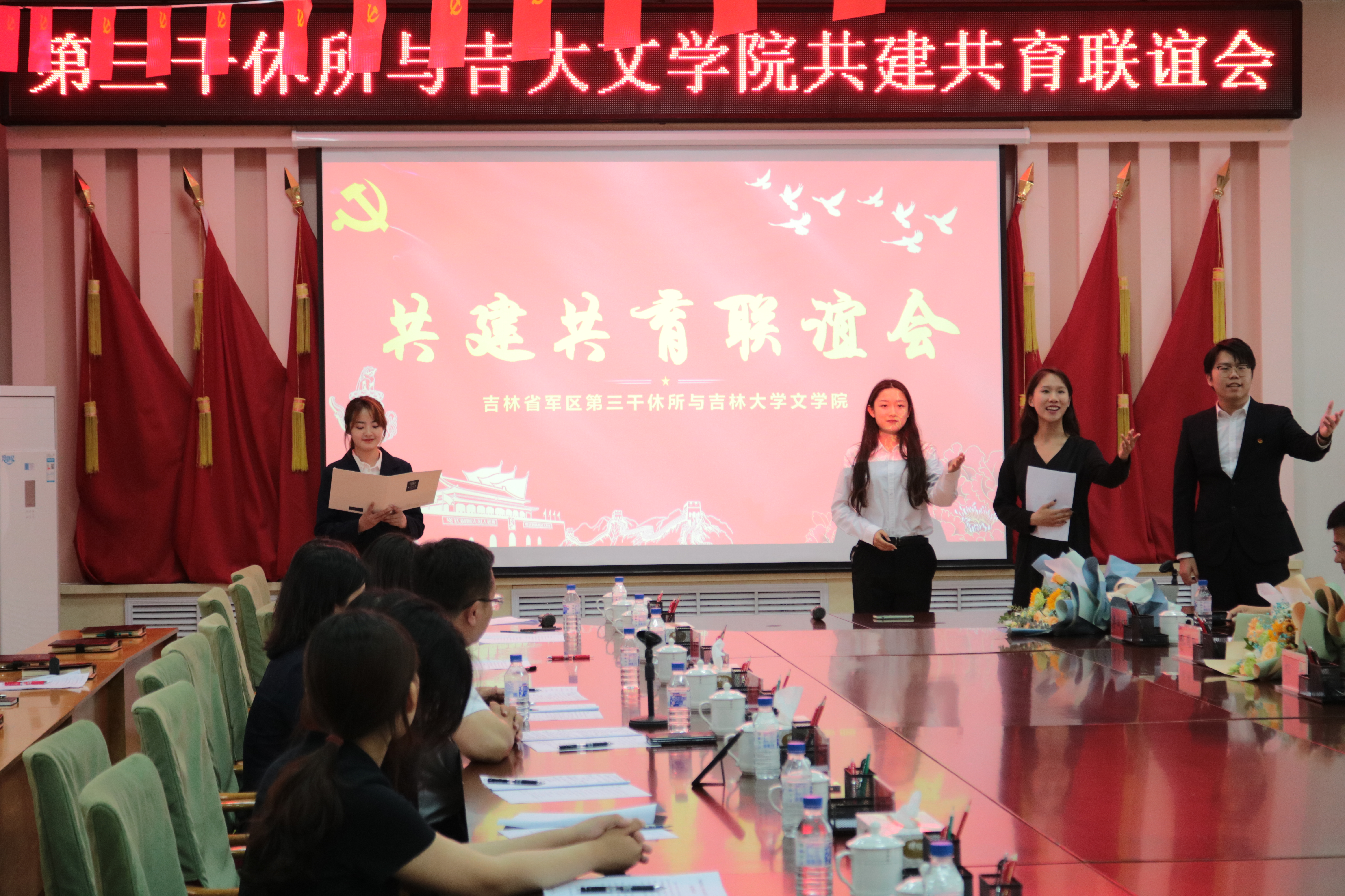 为隆重庆祝中国共产党成立100周年,深入开展党史学习教育,弘扬红色革命传统,赓续红色育人血脉,7月8日下午,3377官方网站_3377(中国)与吉林省军区第三干休所联合举办了共建共育联谊会。会议在第三干休所活动中心举行,干休所政委姜振龙同志、所长王建伦同志、五位退休军职首长、干休所全体工作人员,3377官方网站_3377(中国)党委书记康永刚、党委副书记兼纪委书记刘卓、党委副书记兼副院长杨一博以及3377官方网站_3377(中国)师生代表参加了本次活动。