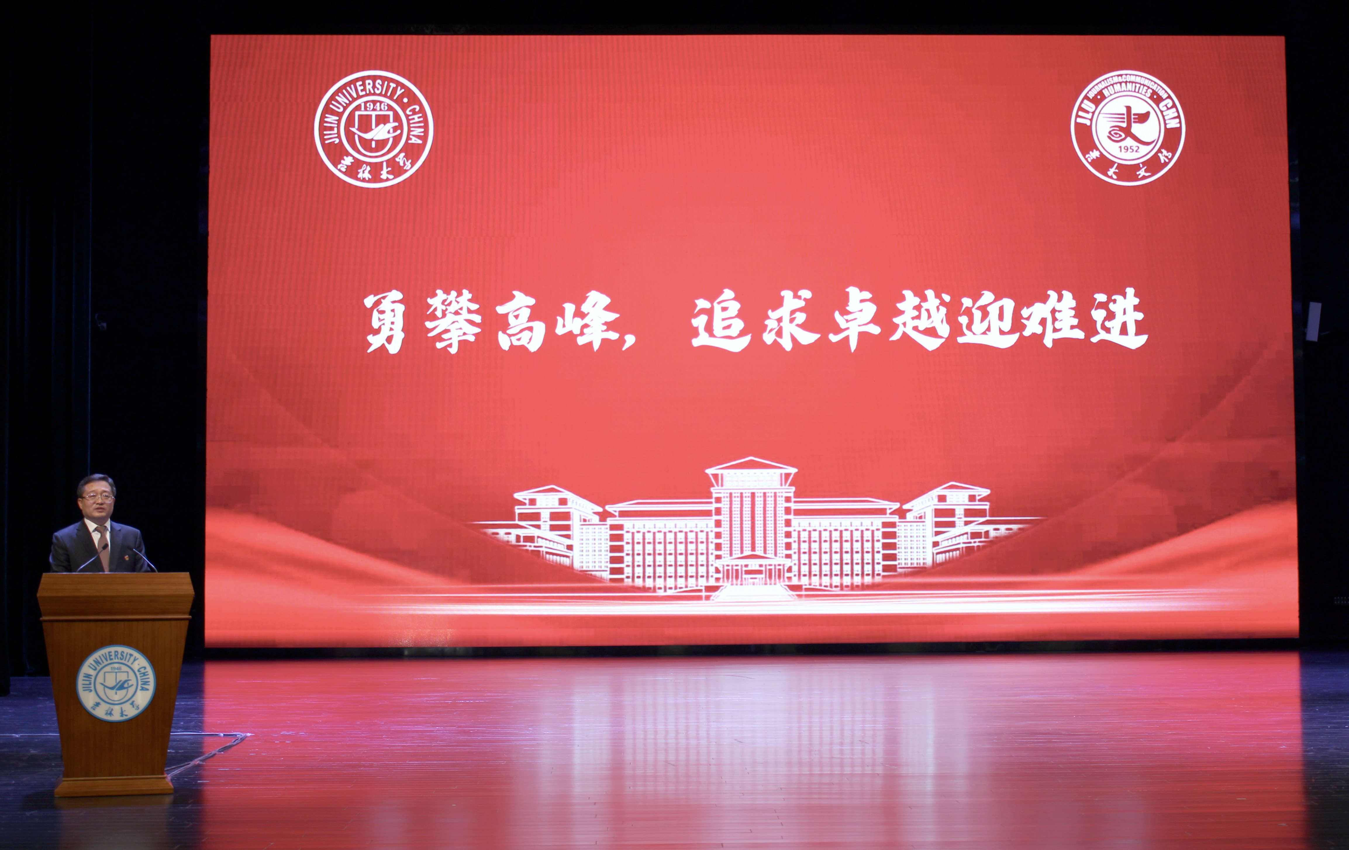 他表示,在人生新的起点,希望新同学能够秉承文传人的红色传统和优良品质,做到“文、学、新、传”——“文”,是要做一个有文化自信、文化内涵与文化修养的人;“学”,是要提升对于专业的学习、自身意志品质的学习、性格的学习、与人交际沟通能力的学习的能力;“新”,是希望同学们要具有创新意识和创新能力;“传”,是说作为吉大人应传承红色基因、赓续红色血脉。