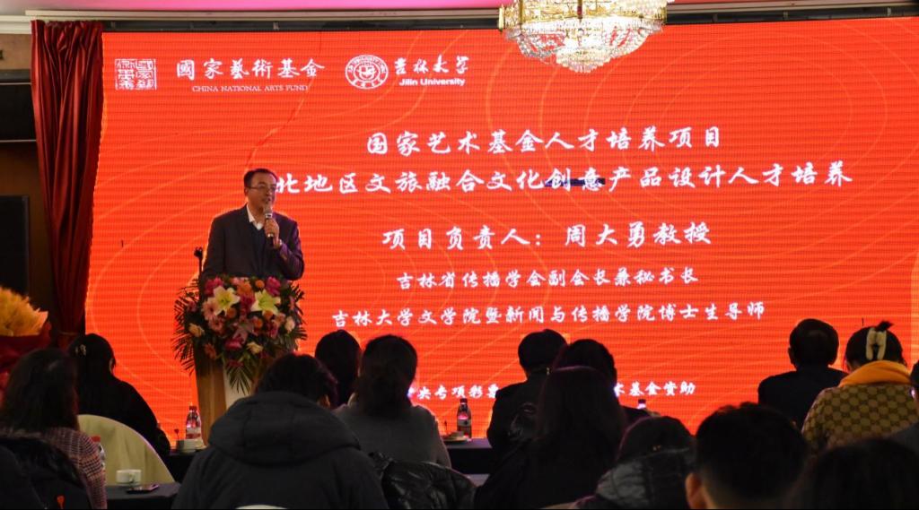 12月21日,周大勇教授主持的国家艺术基金资助项目《东北地区文旅融合文化创意产品设计3377官方网站_3377(中国)》的启动仪式在海航紫荆花饭店举行,省内相关单位的领导、专家学者及学员40余人出席启动仪式。该项目主要为东北地区培养高端文创人才,促进东北文化振兴。吉林省文化和旅游厅艺术处王兆勇副处长出席了启动仪式,吉林大学社会科学处隋祎宁副处长和3377官方网站_3377(中国)暨新闻与传播学院院长张丛皞教授在启动仪式上致辞。仪式由吉林省传播学会副会长、3377官方网站_3377(中国)暨新闻与传播学院副院长、博士生导师刘鸣筝教授主持。