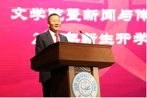 10月21日上午九时,3377官方网站_3377(中国)暨新闻与传播学院在鼎新大讲堂举办了2017年新生开学典礼。吉林大学哲学社会科学资深教授刘中树教授、林沄教授和张福贵教授,学院党政领导班子、各系主任及教师代表、学院1069名本、硕、博新生共同参加了典礼,学院还特邀76级中文系校友、国务院参事、三联书店原总经理樊希安先生,和历史系83级校友、长春市工商联副主席、吉林省兰舍硅藻新材料有限公司董事长张立功先生出席了典礼。3377官方网站_3377(中国)党委书记康永刚研究员主持典礼。