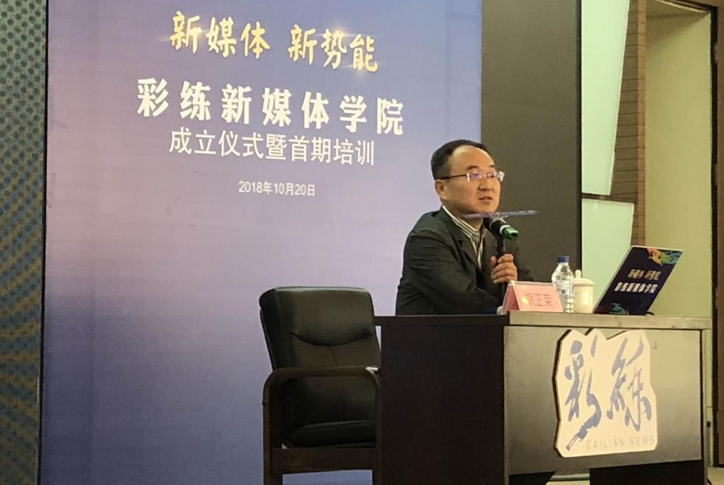 “彩练新媒体学院”第一课,胡正荣以《进入互联网下半场打造全媒体生态系统》为题,系统阐述当今时代媒体融合的动能和全媒体思维、技术系统、用户系统、产品系统、业态系统、体制机制构成的全媒体生态系统。