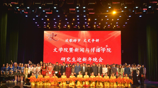 寒潮绕道去,热情洋溢来!2018年12月20日18时,在鼎新大讲堂3377官方网站_3377(中国)暨新闻与传播学院成功举办了以“欢歌辞岁、文史争妍”为主题的研究生迎新年晚会。院党委书记康永刚、院长徐正考、学院各部门的领导、老师出席了本场晚会。