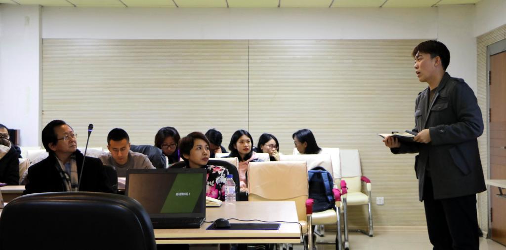 首先进行发言的是来自“中国古文字体验式学术工作坊乌克兰站”项目组的代表博士生孙启灿。该项目负责人是杨一博老师,团队是在徐正考院长、杨一博老师的带领下前往乌克兰首都基辅开展的学术交流活动。在前期准备阶段成员经过了严格的选拔和明确的分工,并制定了完善的计划。在活动实施的过程中,带队老师和乌方相关院校商谈了一系列合作事宜,并为乌克兰基辅国立大学中文专业的师生作了一系列精彩的报告会和讲座,徐正考院长《有容乃大——以汉语的包容性为例》的讲座,获得了乌方高校师生的一致好评。团队师生也先后在乌克兰一些学校举办了中国文化的交流展示会,例如“中国文字暨古文字书法艺术展”、“《有趣的甲骨文》汉字文化课”,并代表吉林大学参加了乌克兰汉语教师高级研讨会议。参加本次交流活动的学生在结束后进行了相关论文和调研报告的撰写,并制作了一个视频短片。这些成果得到了乌克兰驻华大使馆教育处王大军处长、吉大前任校长李元元教授等领导的肯定,新华网也对此次活动进行了报道。