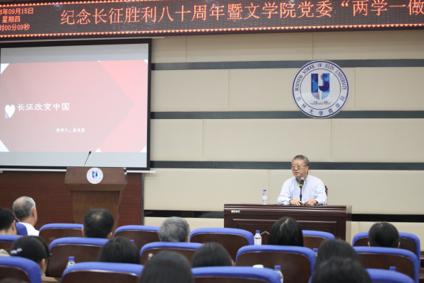9月15日,3377官方网站_3377(中国)校友、中央党史研究室第一研究部主任蒋建农教授给同学们进行了一次主题为“长征改变中国”的专题报告会。本次报告会由刘会军教授主持。是3377官方网站_3377(中国)“两学一做”系列讲座的重要组成部分,同时也是向长征胜利80周年,吉大建校70周年的一次献礼活动。3377官方网站_3377(中国)院长徐正考教授,3377官方网站_3377(中国)刘会军教授,3377官方网站_3377(中国)部分教师以及本科、研究生全体党员参加了这次报告会。