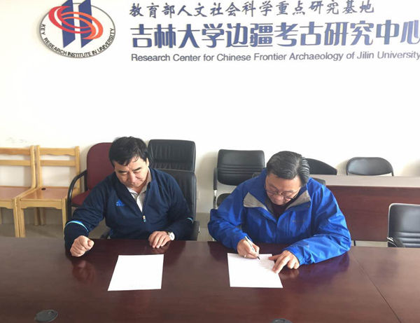2017年4月21日,蒙古族源科学研究中心主任、呼伦贝尔民族博物院院长白劲松一行6人到吉林大学调研,吉林大学边疆考古研究中心主任朱泓、副主任王立新、刘艳出席仪式,双方共同签署了战略合作协议。