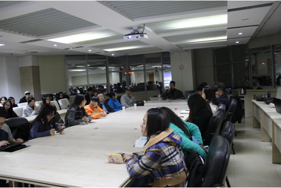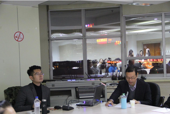 讲座开始后,邢哲铭中英文切换自如,好听又流利的英文,一口字正腔圆的标准普通话,让前来参会的同学们有一种身临CCTV-New双语直播现场的感觉。他以白山、长春、北京、香港和上海等“五城故事”将自己的求学、从业经历串联起来。他出生于吉林省白山市,在长春市读的高中,考入中国传媒大学公共关系学专业,2008年在北京奥运会和残奥会期间,他到国际新闻中心担任了为期100天的志愿者,见证了北京奥运会激动人心的时刻。读大三又在香港大学进行了为期一年的交换生学习,令他开阔了视野。大四的时候,非英语专业出身的他获得了北京市大学生英语演讲比赛的特等奖。很多人曾问他,为什么英语这么好时,他分享了自己的英语学习经历:初中从家去上学需要走半小时的路程,他就利用这段时间自言自语练习英文,也因为他出色的英文表达使他获得了去央视英语频道实习的机会。在接近7个月的大夜班实习过程中,他经历了福岛核电站泄露、威廉王子大婚等重大新闻的报道。在讲座过程中,他妙语连珠,幽默睿智,还不时抛出“包袱”博得全场欢笑,第一印象中的距离感渐渐在笑声中消散,取而代之的是亲切平易和翩翩气度。