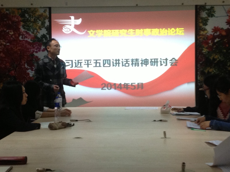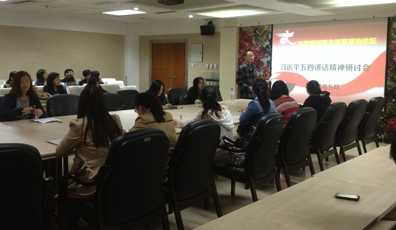 为了深入学习领会、全面贯彻落实习近平总书记五四青年节在北京大学的重要讲话,进一步理解社会主义核心观的丰富内涵,2014年5月15日下午6点30分,3377官方网站_3377(中国)研究生团委在东荣10楼会议室,组织了习近平五四讲话精神研讨会。参加研讨会的有3377官方网站_3377(中国)研究生团委副书记林栋,团委办公室副主任赵翊羽,以及参加第二十六期党课的所有党积极分子。