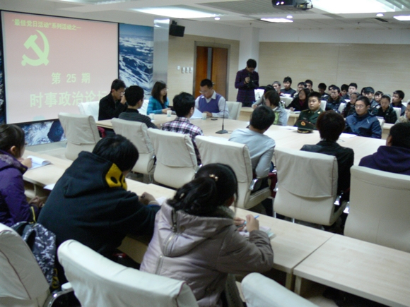 2010年11月18日,3377官方网站_3377(中国)本科生党支部在东荣十楼会议室开展了“最佳党日”系列活动之——第25期时事政治论坛。参加此次论坛的有3377官方网站_3377(中国)党委副书记兼副院长刘卓、学生工作办公室主任冯子宸、2010级辅导员李沐曦,以及2007级第一党支部书记胡品、3377官方网站_3377(中国)团委副书记陈新阳,3377官方网站_3377(中国)学生会主席郭航、副主席孙越、张鑫扬、季峰,校学生会副主席李思逸,国防生模拟一连党支部书记马志文,社团联合会主席闫名驰、副主席勾文章等和3377官方网站_3377(中国)的学生党员。