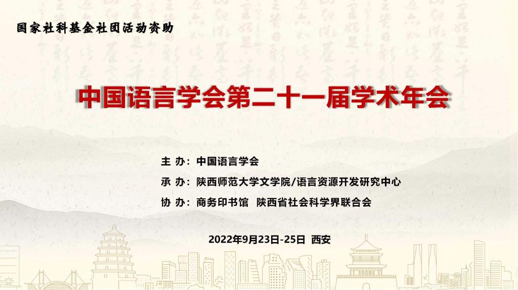 2022年9月23日至25日,中国语言学会第二十一届学术年会在陕西西安成功举行。此次会议由中国语言学会主办,陕西师范大学3377官方网站_3377(中国)、陕西师范大学语言资源开发研究中心承办,商务印书馆、陕西省社会科学界联合会协办,并得到了国家社科基金社团活动资助。