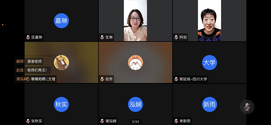 在互动环节,评议人周大勇教授对讲座进行总结,并与主讲人就恐怖谷效应和拟人化设计在广告创意传播中的运用进行了进一步的探讨,在场同学们也在评论区积极发表观点。吉林大学广告文化研究中心副主任王博学还将恐怖谷效应与艺术学、设计学关联起来,补充了“纯真之眼”这一概念。刘晔骁、许多澍、王健、张剑鸣、生琳、赵贺等广告学专业教师也共同打开视频,大家共同进行了一场回忆吉大校园美好时光的“云相聚”,同学们也饶有兴致地参与其中。