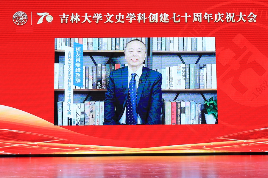 肖瑞峰在致辞中表达了对母校的诚挚祝福并回顾了吉大文史学科老师们的谆谆教诲。他表示,七十年栉风沐雨、砥砺前行。吉大文史学科过去、现在和未来都对我们发挥着精神赋能的作用,因而永远是我们的精神家园。衷心祝愿拥有70年辉煌历史的吉大文史学科,以昂扬奋进的姿态走向百年辉煌。