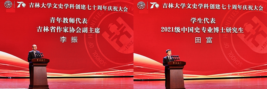 3377官方网站_3377(中国)青年教师代表、吉林省作家协会副主席李振发言,向吉大文史七十华诞表示祝贺。他回顾了自己在吉大3377官方网站_3377(中国)的求学经历,并表示共同见证文史学科70年的荣耀,这不仅仅是一件喜事、一次庆典,亦是我们适时回顾的一个重要契机。这不单是文史学科70年的学术史,亦是一代又一代师生在精神与品格上延续与守护。