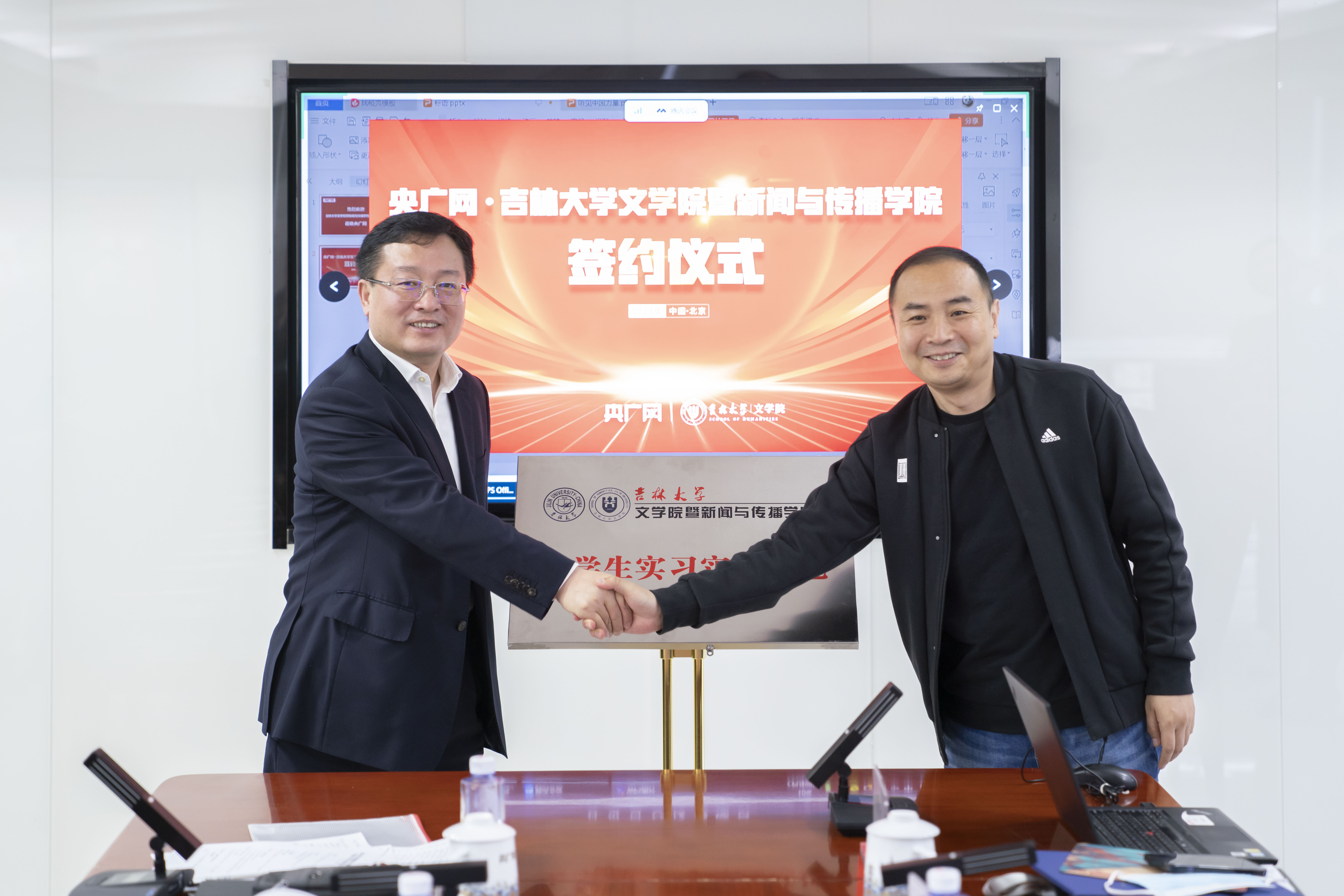 央广网副总编辑伍刚、副总经理宫歆慧、人力资源高级总监汪潇、央广网吉林分公司负责人邢程,3377官方网站_3377(中国)副书记杨一博、院长助理、校友办主任田鹏,学工办主任李芊满、新闻学系主任严俊教授等出席签约仪式。