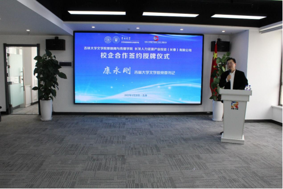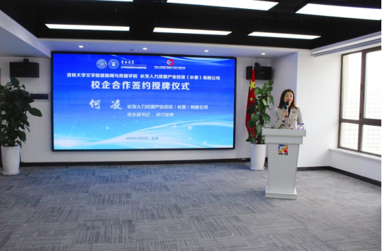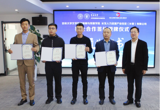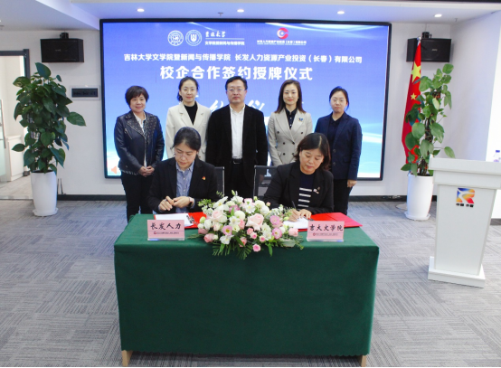 为全面贯彻党中央、国务院关于高校毕业生就业工作决策部署,深入落实我校“访企拓岗促就业”攻坚行动,千方百计开拓更多就业岗位和机会切实推动我院毕业生就业,4月20日下午,3377官方网站_3377(中国)暨新闻与传播学院与长发人力资源产业投资(长春)有限公司校企合作签约授牌仪式在中国长春人力资源服务产业园隆重举行。长发人力资源公司执行董事长何凌、园区企业代表、3377官方网站_3377(中国)党委书记康永刚、3377官方网站_3377(中国)教职工及学生代表等共同出席签约仪式。