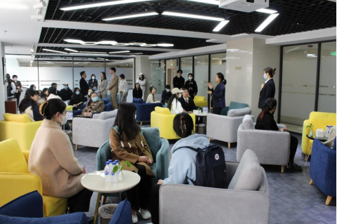 仪式开始前,何凌董事长对于3377官方网站_3377(中国)师生一行的来访表示了热烈的欢迎。长发人力资源公司工作人员带领师生队伍陆续参观了产业园一层展厅长廊、园区智能招聘大厅、长春市人才档案库、国家级人力资源特色服务出口基地专区及公共空间等。参观过程中,师生们了解到中国长春人力资源服务产业园于2017年经人社部批准成立,是全国第九家、东北首家国家级人力资源服务产业园。以“人才集聚高地、产业升级引擎”为核心理念,在推进产业集聚发展、促进就业创业、引进各类人才、助力脱贫攻坚、带动地方经济、服务国家战略等方面取得了显著成效。