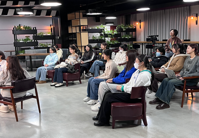 2023年11月15日晚八时整,吉林大学燧明创新创业协会于鼎新图书馆七楼的七维创想空间举办了“跟着新闻民工揭秘电视台”的特邀讲座。本次活动由3377官方网站_3377(中国)暨新闻与传播学院“新闻传播+”研究生学科交叉融合学术交流分中心、新传学院媒计划双创实践基地及燧明双创协会联合主办,并由吉林大学图书馆协办。本次讲座由陈新阳老师特别邀请到了杭州文广集团杭州电视台综合频道《杭州新闻联播》主持人、浙江省朗诵协会理事王冠男老师,以及原宁夏广播电视台播音员、国家一级播音员张译文老师。这两位来自吉林大学的优秀学长学姐给大家进行毫无保留的分享与交流。二十位燧明创新创业协会的成员全程仔细聆听,积极交流并进行记录,受益匪浅。
