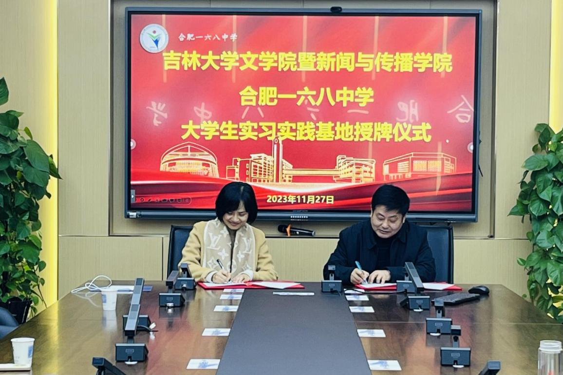 在合肥调研期间,3377官方网站_3377(中国)暨新闻与传播学院副院长李冬梅代表学院,分别与合肥一六八中、安徽中广传播等单位,签订实习实践基地协议并授牌。