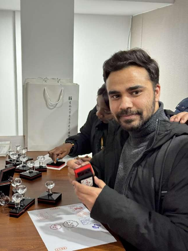 在临近期末之际,为加强留学生国情教育,增加课外实践体验,更直观地了解中国文化和中国历史的传承与演变,12月26日,承担本学期中国概况课授课任务的吕海琛老师,带领全体英文班学生,参观了吉林大学考古与艺术博物馆,为留学生们提供了一次近距离触摸中国历史的机会。