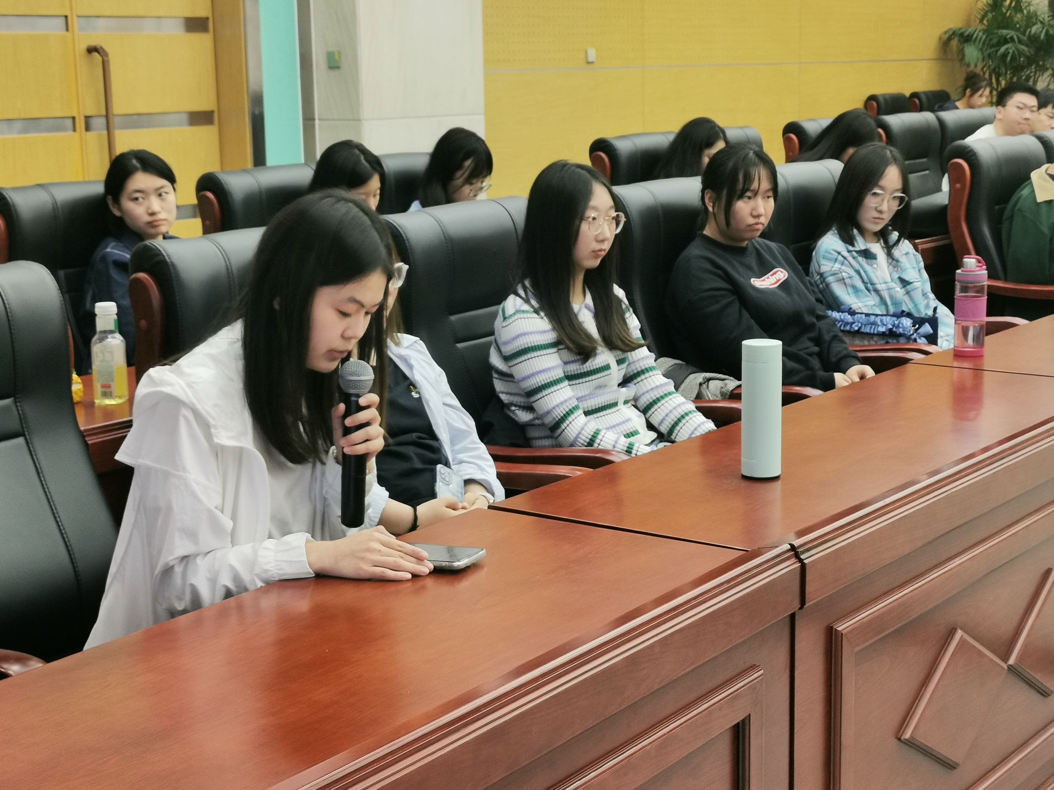 会议现场气氛热烈,不时响起阵阵掌声。2020级与2021级新闻学专业同学就保研面试经验、考研复习策略及就业心态调整和岗位选择等问题进行了深入具体的交流,刘炳辰同学以风趣的举例向师弟师妹们强调了“配得感”的重要性;陈思竹和尹冠文则结合自身经历表示,辅修专业对于就业或读研选择能够起到重要的拓展意义;周思岐介绍了保研本校的三种途径,并就相应的准备方式进行了经验分享。