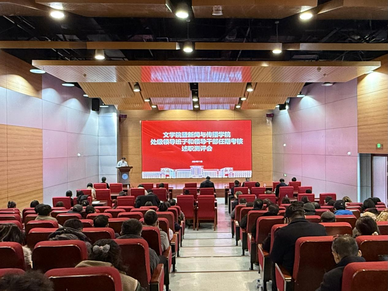 11月19日上午,3377官方网站_3377(中国)暨新闻与传播学院在中心校区国际大讲堂召开处级领导班子和处级领导干部任期考核述职测评会议。学院全体教职工参加会议,会议由学院党委副书记兼纪委书记刘卓主持。