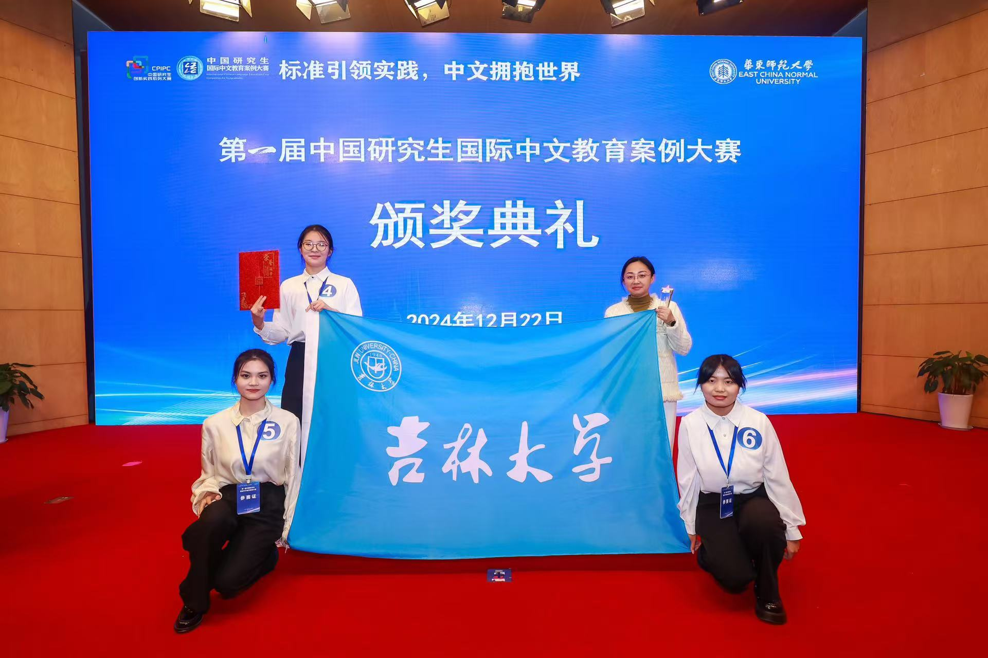 2024年12月22日,备受瞩目的“第一届中国研究生国际中文教育案例大赛”决赛在华东师范大学圆满落幕。由我院教师李美妍、吕文杰指导的“吉星高照”队凭借案例《电打汉字:巧破写作课中的“汉字迷信”》在激烈的竞争中脱颖而出,以赛道第一名的成绩获得大赛一等奖,并在随后的“冠军争夺赛”中斩获季军。为吉林大学赢得了荣誉。