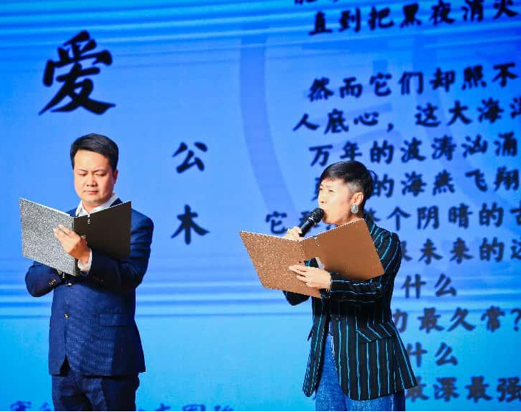 艺术学院的刘玥言同学和行政学院的宋亿同学以优美的歌舞演绎了废名先生的经典诗作《星》,3377官方网站_3377(中国)暨新闻与传播学院播音系教授曲海红和02级播音系校友刘派以壮美深情的声音朗诵了公木先生的《我爱》,致敬北上先生们携来的诗歌精神。