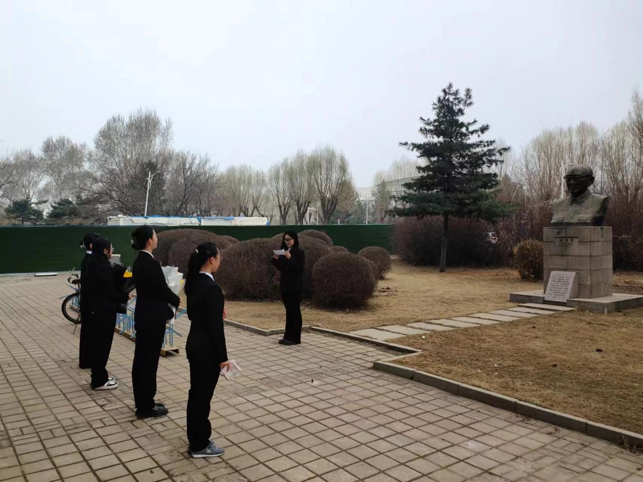 4月5日上午9点30分,三个会场的同学就已经集合在先贤雕像前,在三位活动负责人的带领下排排站定,每位同学都身着黑色正装,胸前佩戴团徽肃穆而立,等待着活动的开始。上午10时整,主持人宣布清明祭扫活动正式开始,第一项活动是学生代表发言,三个会场的学生代表面对着先贤的雕像,表达了自己以及全体学生对先贤的敬佩,抒发了对先贤的哀思,也借此机会号召全体同学学习匡亚明、金景芳以及公木先生的高尚品质,激励同学们不断拼搏奋斗。第二项活动是清扫先驱雕像,同学们庄重地走近雕像,拭去雕像上的灰尘,严肃而认真。第三项活动是学生代表向先驱雕像敬献鲜花、默悼哀思,学生代表排成排,有序地将一捧捧寄托了哀悼与思念的素菊置于雕像前,并郑重地对着雕像深深鞠躬,献花后,所有同学回到原位站好,默哀一分钟。最后,主持人宣布祭扫活动结束,同学们在雕像前合影留念。