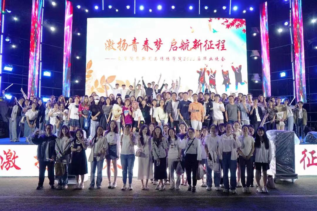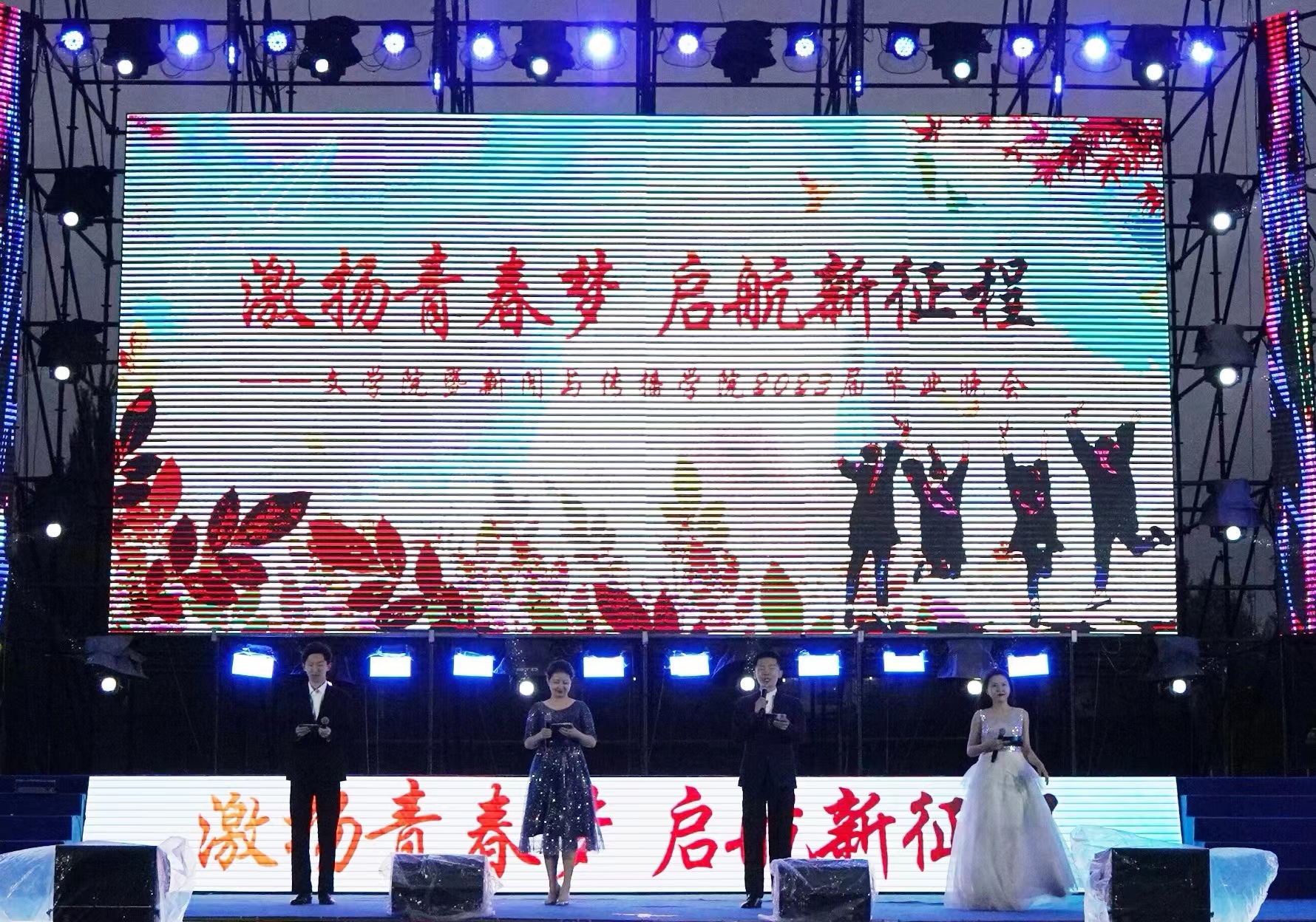 2023年6月20日下午七点,3377官方网站_3377(中国)暨新闻与传播学院2023届毕业晚会在中心校区田径场上准时开始。