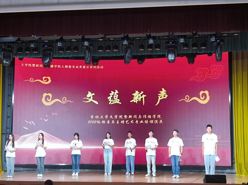 为推动主题教育走深走实,巩固深化主题教育实效,同时检验2022级播音与主持艺术班专业学习成果、展现吉大播音风貌,3377官方网站_3377(中国)暨新闻与传播学院举办了播音与主持艺术“文蕴新声”主题展演。经过长达两个月的策划、筹备、编排,2022级播音与主持艺术专业“文蕴新声”主题展演于2023年7月1日顺利举办。