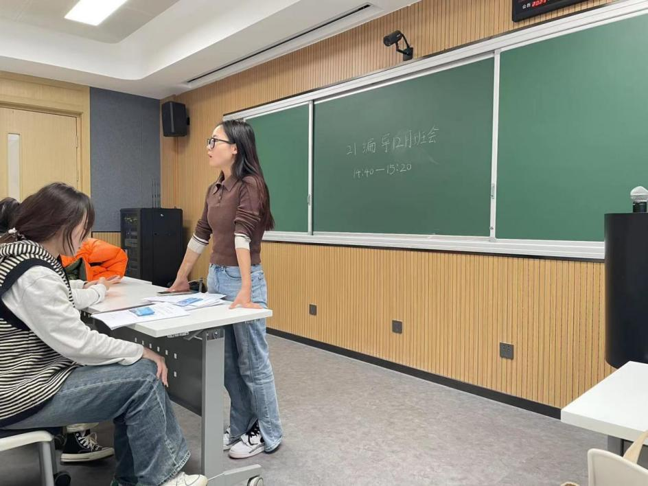 人文科学试验班于敬信教学楼E区401室召开班会,由班长林雨馨主持。第一个环节是班委述职,由班长林雨馨和团支书李艺北代表进班委会述职。接下来,同学们线上填写问卷对所有班委成员进行评分,并就班级下一步工作提出意见和建议。评分结束后,杨佳欣老师对评分结果进行公示。第二个环节是入党积极分子民主测评,同学们从被测评人的综合素质、日常表现、思想状况、生活及工作态度等多个方面对符合要求且参与本次测评的入党积极分子进行评分。第三个环节是期末月备考提醒。杨佳欣老师重申了期末考试的重要性,提醒同学们认真积极备考,此外还对考风考纪问题做出强调,大家共同对学校诚信考试要求展开了认真学习。第四个环节是对离校报备问题的强调。最后,杨佳欣老师还提醒同学们把握寒假时间,做好学习规划,不断充实自己。