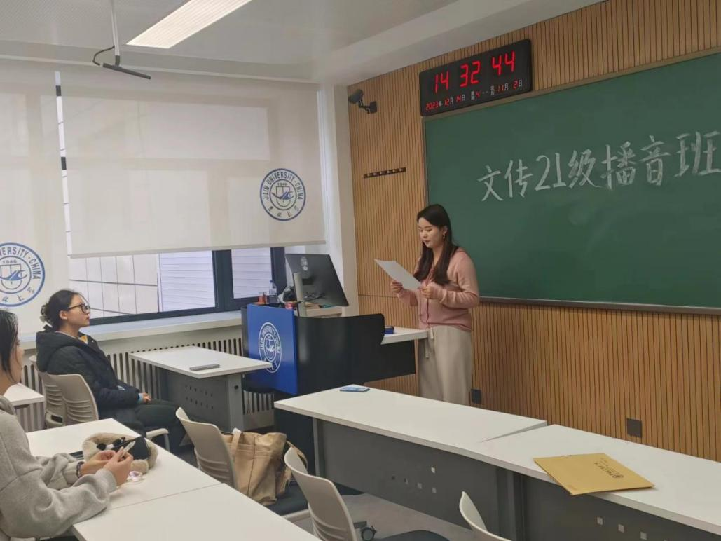 播音与主持艺术专业12月班会围绕着班务建设,期末考试和积极分子民主测评三大主题展开。辅导员杨佳欣首先强调大家要以饱满的热情备战期末,同学们依次签下诚信考试承诺书。班会第二部分进入班干部任职阐述环节,分别由团支书曹子墨同学和班长周天怡同学上台进行述职。曹子墨介绍了本学期播音班团支部的工作成果,班长周天怡同学介绍了本学期班级日常事务的总结,介绍了班委会近期完成的工作,以及对自己仍需要进步和学习的地方做出了合理的总结。紧接着,班级全体同学对于其他班干部任职工作情况民主投票,在严肃公正的投票后,杨佳欣对班委工作表达了赞许和期望。