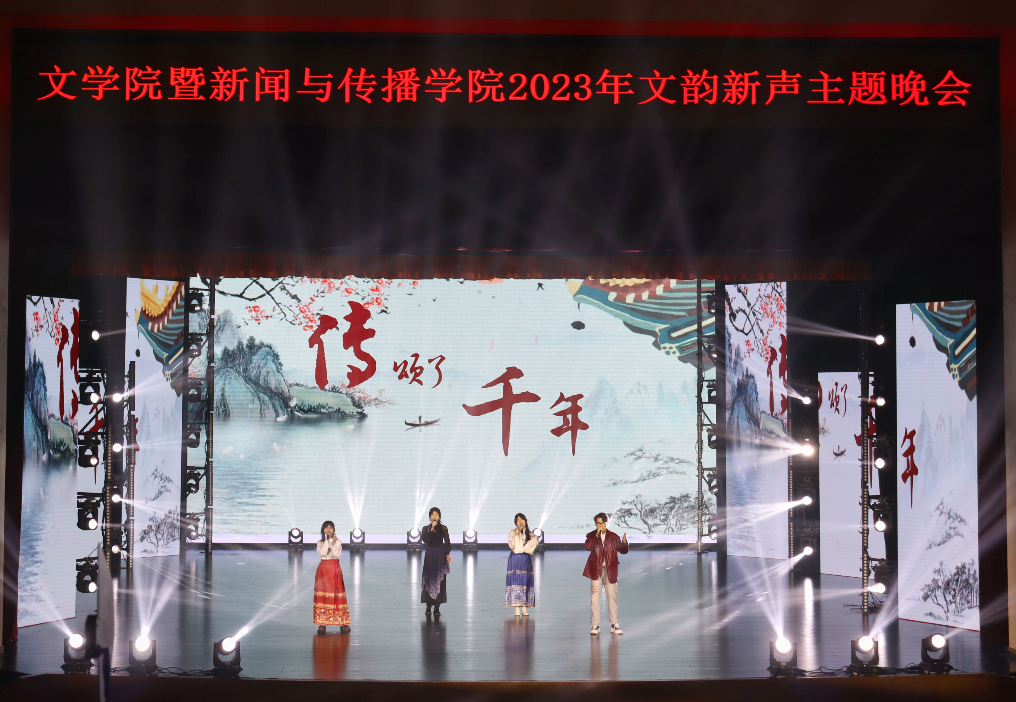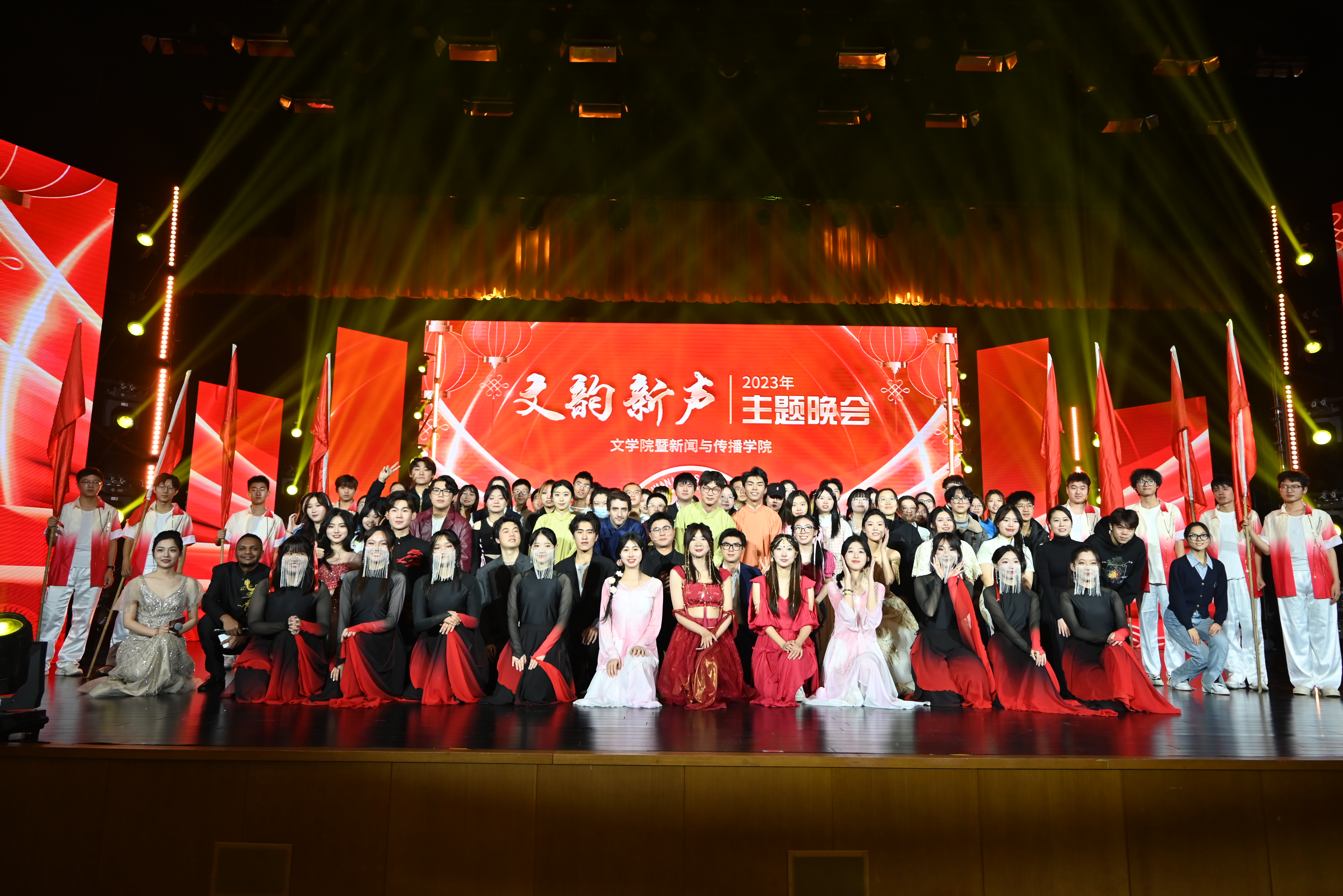 为丰富同学们的校园生活,进一步传承中华优秀传统文化,12月23日18时,3377官方网站_3377(中国)暨新闻与传播学院“文韵新声”2023年主题晚会于中心校区鼎新大讲堂顺利举办。3377官方网站_3377(中国)党委书记霍志刚、党委副书记刘卓、党委副书记杨一博、副院长刘艳、副院长梁玉水、副院长姜明等学院党政领导班子成员与全院教师、本研新生们共赴盛宴。