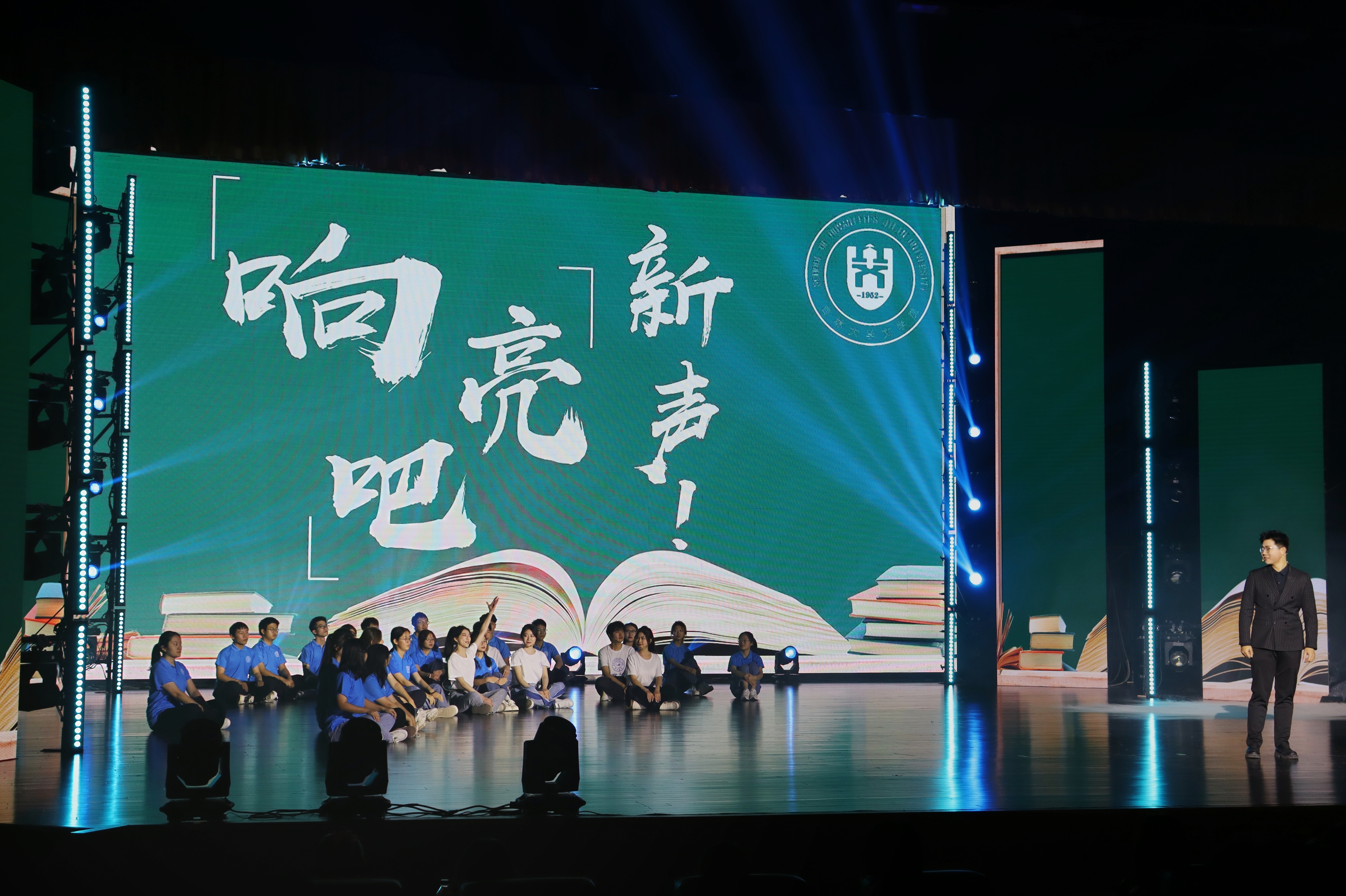 在第三篇章——承:文传之志中,《曳铃》舞蹈演员们的舞姿翩若惊鸿,婉若游龙;《趣味配音秀》将影视剧与学习生活结合,引起台下观众的深刻共鸣;歌曲《不忘初心》在回忆学院发展史、前辈先贤和优秀校友的事迹中进一步坚定文传师生的信念和意志;教师与新生代表们通过情景剧《响亮吧!新声!》的演绎,向观众展示了文传学子的蓬勃朝气。