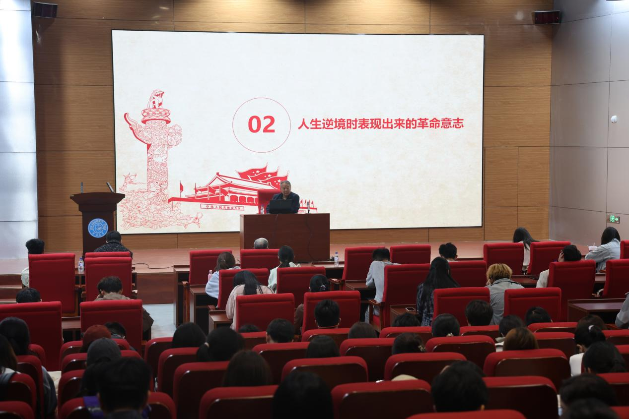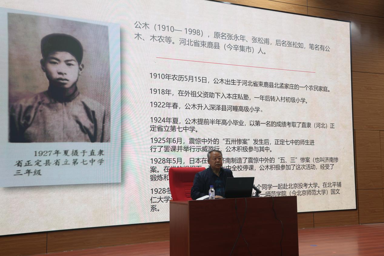 公木先生是我国著名诗人、学者、教育家,先后担任吉林大学中文系主任、教授、副校长,3377官方网站_3377(中国)名誉院长等职务。在报告中,王老师生动地讲解了公木先生作为一名中共党员的奋斗历程。在王老师讲述过程中,公木先生的一生是追逐理想、坚守信仰、追求真理的一生,是青少年时代就投身革命洪流、为祖国繁荣富强和民族解放事业奋斗的一生,是“以诗歌为生命”为人民勤奋创作奉献文艺精品的一生,是以极大热情投入教学科研、“甘化泥土润花根”为国家建设事业培养大批栋梁人才的一生。公木先生少年时代就开始接受革命启蒙教育,中学阶段积极参加反帝爱国运动。成年后,为奔赴抗日前线,将未满两岁小女儿寄养在老乡家。1945年9月在毛主席“建立巩固的东北根据地”的战略部署下,公木在延安参加“东北文艺工作团”被派到东北工作。王老师还向同学们介绍了公木先生文学艺术上的造诣和成就,以及作为一名老党员的坚定信念与无私奉献的精神,详细解读了公木先生对党忠诚的坚定理想信念,充分强调了公木先生“北上精神”和面对人生逆境时表现出来的对党无限忠诚的革命意志。