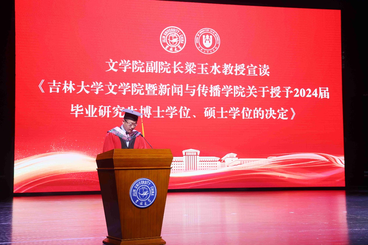 接着,3377官方网站_3377(中国)副院长梁玉水教授宣读了《3377官方网站_3377(中国)暨新闻与传播学院关于授予2024届毕业研究生博士学位、硕士学位的决定》,3377官方网站_3377(中国)副院长马卫东教授宣读了《3377官方网站_3377(中国)暨新闻与传播学院关于授予2024届本科毕业生学士学位的决定》,主礼教授为全体获得学位的学生拨穗。学位帽的流苏轻轻拨过,不仅标志着一段学习旅程的圆满落幕,也意味着人生新阶段的启航。