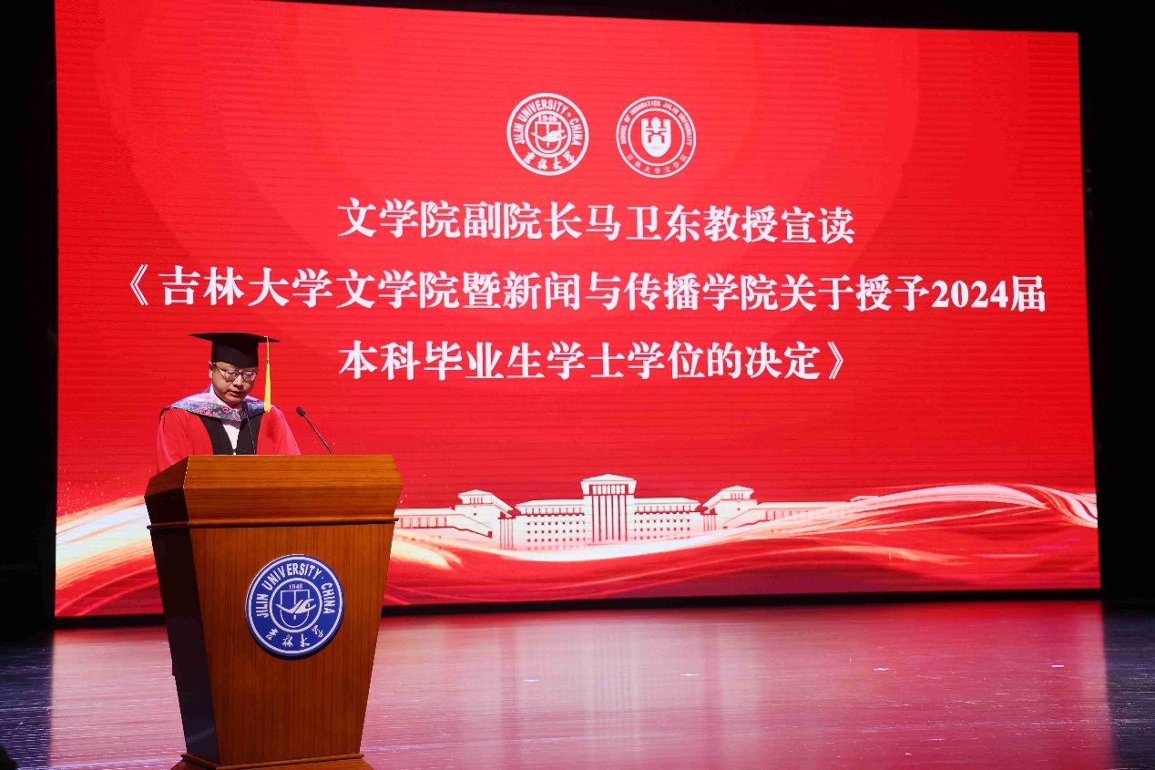 出席典礼和学位授予仪式的主礼教授有张福贵教授、徐正考教授、杨军教授、张丛皞教授、孔朝蓬教授、李子君教授、马卫东教授、梁玉水教授、李冬梅教授、蒋金玲教授、史海波教授、刘艳茹教授、宋卿教授、徐萍教授、李佳教授。学院党委书记霍志刚、党委副书记杨一博、副院长姜明,以及全体辅导员、校友代表、家长代表、教师代表与全体2024届本研毕业生参加典礼。典礼由3377官方网站_3377(中国)党委副书记、纪委书记刘卓主持。