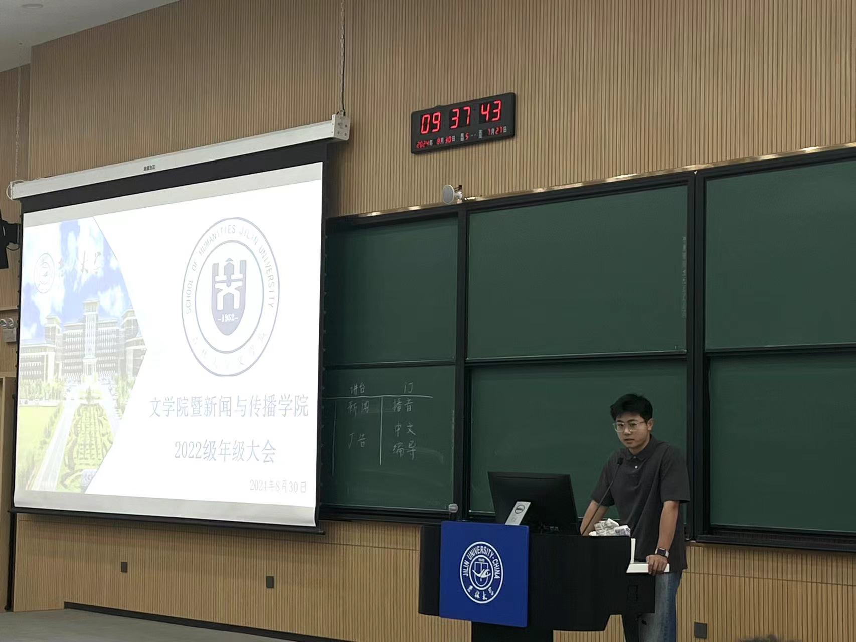 热浪褪去,秋意渐浓,经过了一个半月的暑假,同学们再次相逢于初秋的校园。2024年8月30日上午,2022级全体同学与辅导员李芊满老师,兼职辅导员王振彰老师齐聚敬信楼一阶教室,召开新学期第一次年级大会。