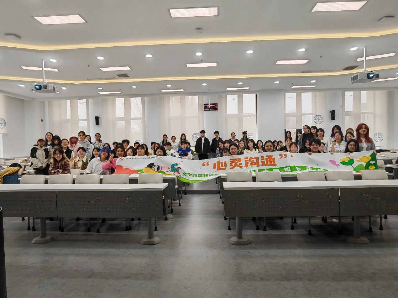 2024级汉语言文学专业于4月19日开展团体心理辅导活动,通过“拒绝暴力沟通”“认识非暴力沟通”“大转盘说话练习”“合影留念”四个环节陆续展开。同学们在班会上练习如何解决生活中的一些困惑,如寝室交流、小组作业合作等。最后,班委们用一张“全家福”记录下同学们成长的时刻,也为本次活动画上句号。