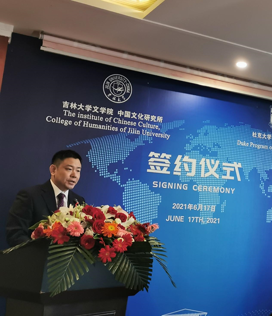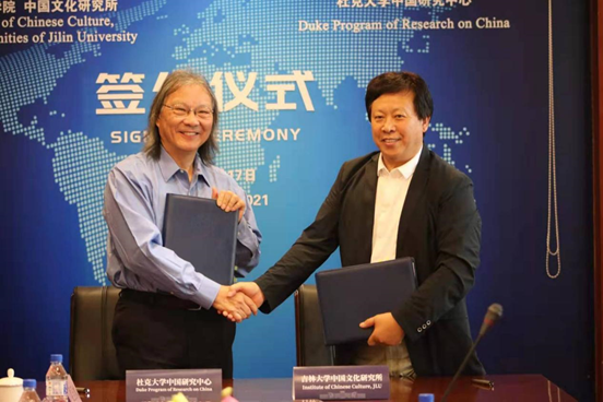 2021年6月17日,吉林大学中国文化研究所与美国杜克大学中国研究中心在吉林大学东荣大厦举行战略合作协议签约仪式。美国杜克大学中国研究中心主任、欧洲科学院外籍院士刘康教授应邀与吉林大学哲学社会科学资深教授、吉林大学中国文化研究所所长张福贵教授签署战略合作协议。3377官方网站_3377(中国)暨新闻与传播学院院长张丛皞,3377官方网站_3377(中国)副院长刘鸣筝、李子君、梁玉水,新闻与传播学院副院长姜明,3377官方网站_3377(中国)暨新闻与传播学院党委副书记、副院长刘卓,3377官方网站_3377(中国)暨新闻与传播学院副院长刘艳,吉林大学中国文化研究所副所长张斯琦等参加了上述活动。仪式由梁玉水主持。