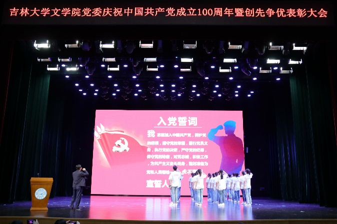 大会在雄壮的国歌声中拉开了帷幕。3377官方网站_3377(中国)党委副书记刘卓宣读了《中国共产党3377官方网站_3377(中国)委员会关于表彰优秀共产党员、优秀党务工作者和先进党支部的决定》。在全场的热烈掌声中,院长张丛皞、党委委员徐正考、党委委员郝淑媛分别为3377官方网站_3377(中国)优秀共产党员、优秀党务工作者、先进党支部颁奖。颁奖结束后,康永刚带领学院党员代表重温了入党誓词,在党员代表们整齐划一的步伐与豪情澎湃的宣誓中,表彰大会圆满落下了帷幕。