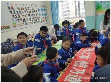 本次活动由杨一博老师和李芊满老师分别带队,两批党员同志们分为八个小组,在28日和30日,先后均以“诚信”为主题为二年级和三年级共四个班级的同学带来了内容丰富精彩、形式多种多样的教育课堂。在课堂开始前,党员同志们受到了附小老师和同学们的热烈欢迎,在经过简短的自我介绍后,各组党员同志邀请各班小同学排练并表演“孟信卖牛”的话剧,以此作为课堂的导入,讲述“诚信”的重要性。随后,小老师们为小同学们分享了一些有关诚信的故事和名言警句,通过投影仪用视频和图片结合的方式,使同学们对诚信有了更全面的了解和体悟。课堂气氛活跃,同学们积极主动地回答提出的问题,并且纷纷上台讲述自己身边的诚信故事。最后,各班评选出身边的“诚信标兵”,并且一起在诚信条幅上进行签字活动。